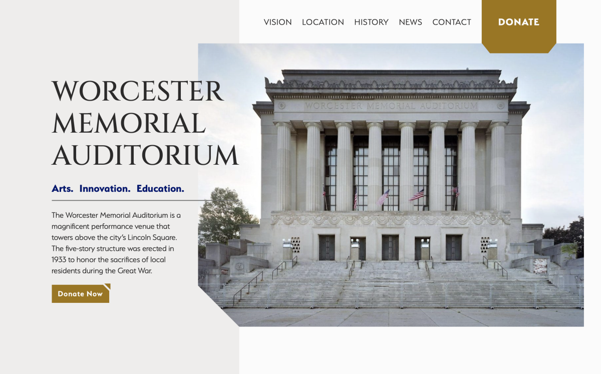 With the Worcester Memorial Auditorium project poised to take big steps forward, AHF has created a new website for the historic building. Working with Sperling Interactive, using refreshed photography from Jason Baker and elevations from DBVW architects, the new website better reflects the current state of the building and the project. It also enables AHF to share more about both the history and the future of this significant Worcester landmark.
